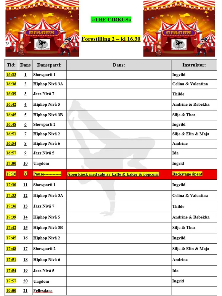 Tidsplan Danseshow